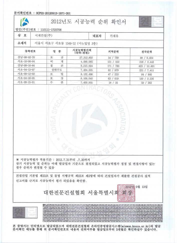 2012년도 시공능력순위 확인서 페이지 정보 등록자 관리자 등록일 18-09-05 13:42 조회 2,377 관련링크 이전글 다음글 목록 본문 2012년도 시공능력순위 확인서 이전글 다음글 목록