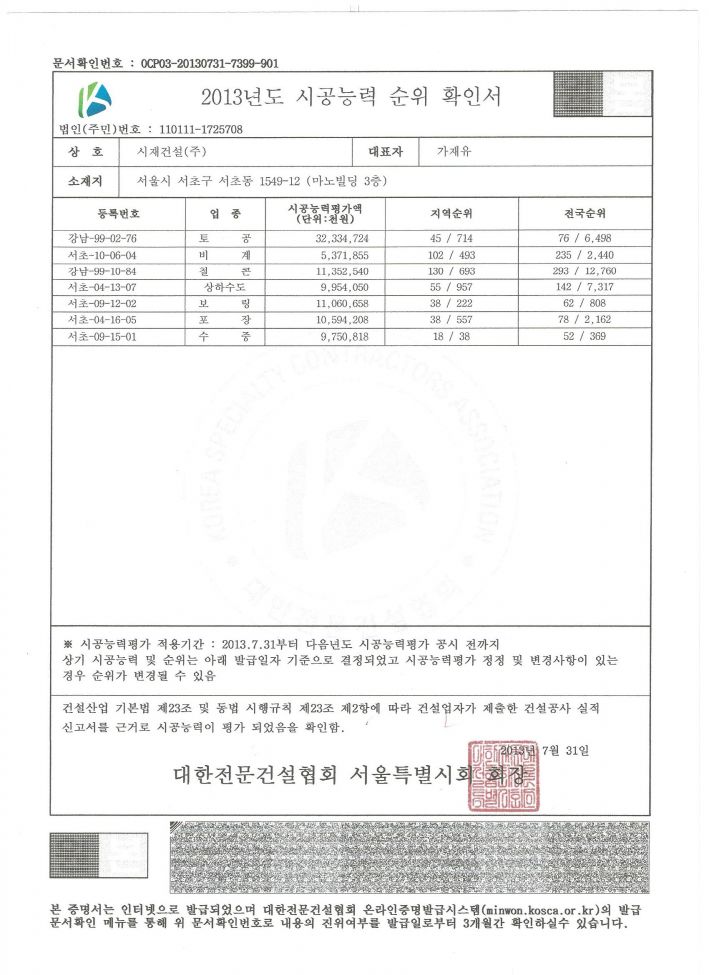 2013년도 시공능력순위 확인서 페이지 정보 등록자 관리자 등록일 18-09-05 13:45 조회 2,414 관련링크 이전글 다음글 목록 본문 2013년도 시공능력순위 확인서 이전글 다음글 목록