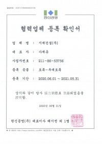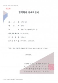 현대산업개발(주) 협력업체 등록증